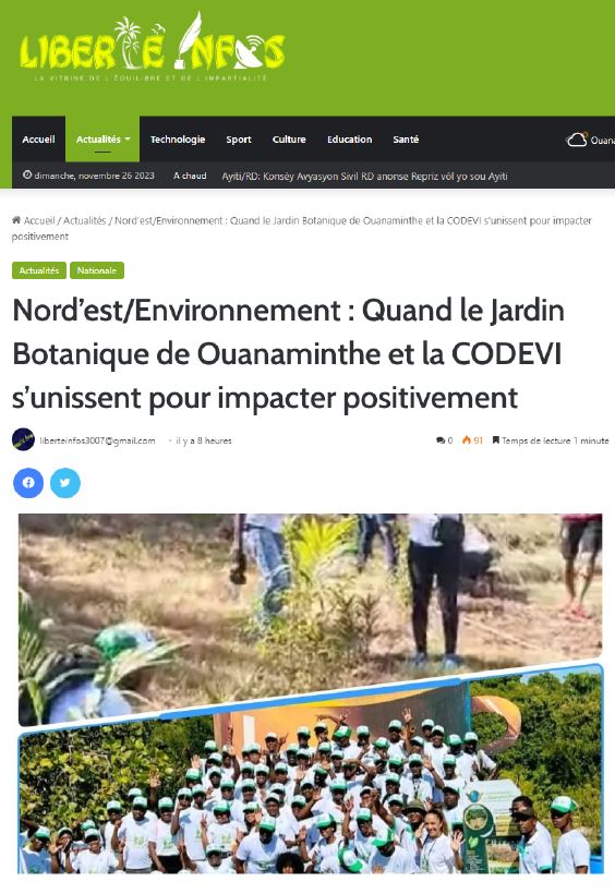 Le jardin botanique de Ouanaminthe est fier de travailler main dans la main avec des entreprises d'Haïti qui sont conscientes de leurs impacts environnementaux et qui posent des actions concrètes afin de les limiter. Nos offrons une vitrine à des entreprises écoresponsables d'Haïti qui souhaitent participer à la lutte aux changements climatiques tout en étant solidaires avec les agriculteurs locaux. Si vous voulez un espace publicitaire sur notre site ou dans nos outils promotionnels, appelez-nous au 514 963 9964 ou envoyez nous un courriel. Merci et à bientôt.